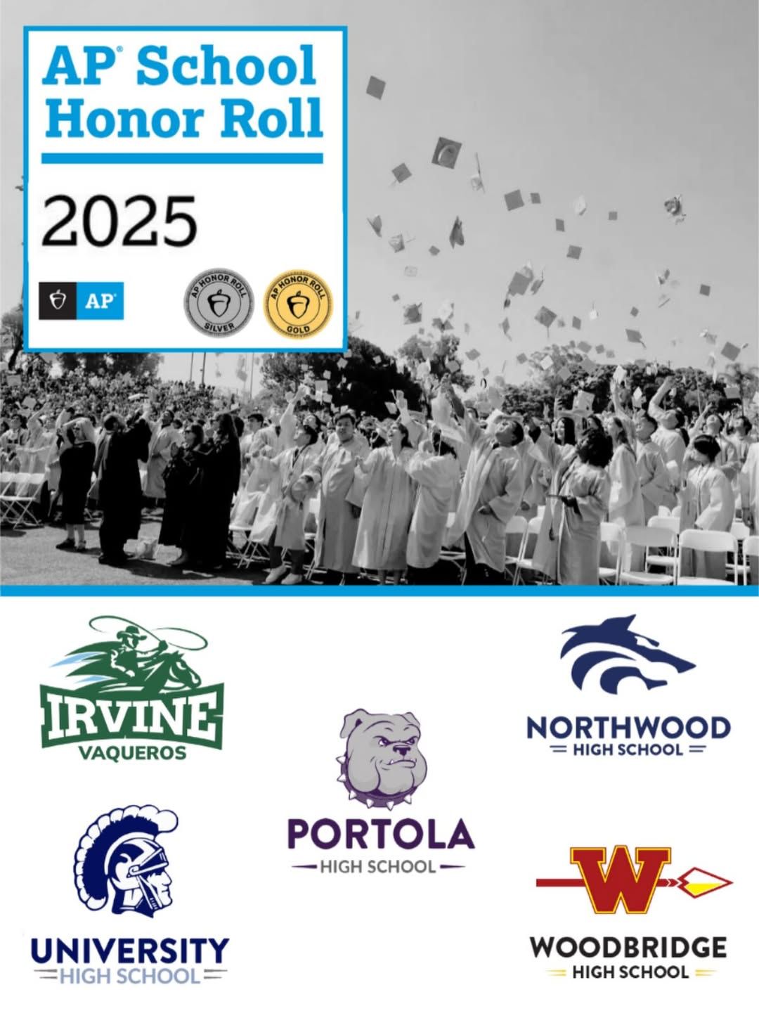All five Irvine Unified School District comprehensive high schools were named to the College Board’s AP School Honor Roll for 2025. The national recognition acknowledges the district’s efforts to expand access to Advanced Placement coursework and support student participation and performance. The honor reflects the work of students and educators across Irvine, Northwood, Portola, University, and Woodbridge high schools.
