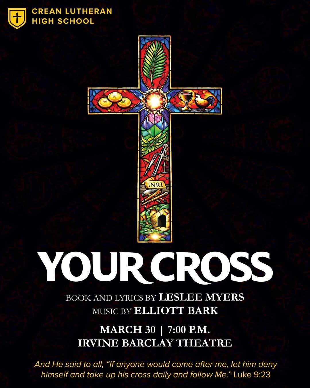 Crean Lutheran High School’s Music Department will present Your Cross, a world premiere original rock musical, on March 30 at the Irvine Barclay Theatre. The production portrays the final days of Jesus—from His teachings and miracles to betrayal, crucifixion, and resurrection—through dynamic staging, rock ballads, and storytelling.