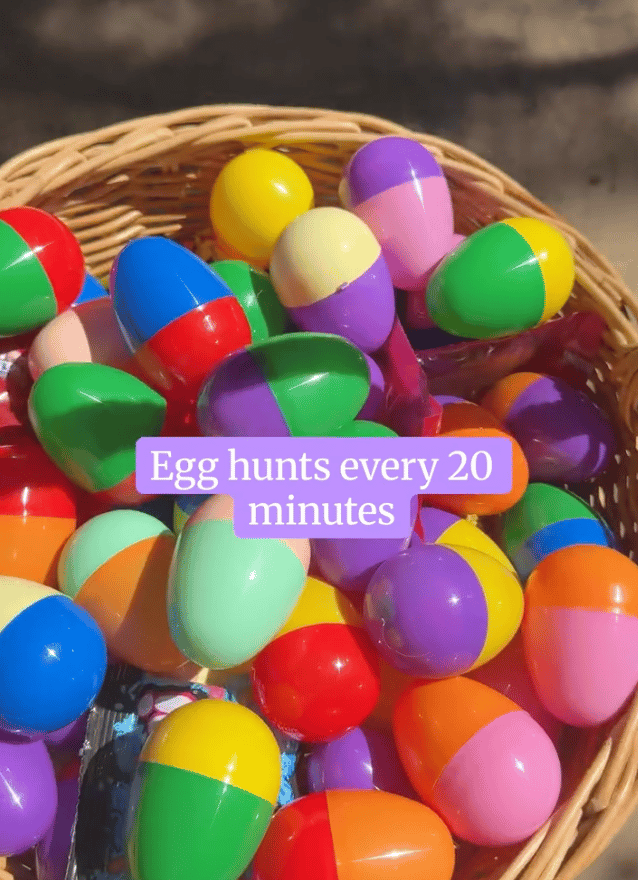 🧺 Easter egg hunts (every 20 mins for ages 2–12)
