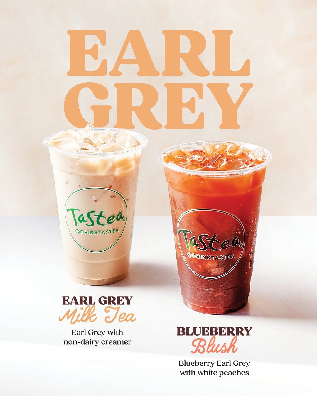 Tastea is introducing its new Earl Grey Series with two drinks — Blueberry Blush and Earl Grey Milk Tea — now available at all locations! Enjoy 20 bonus points when you order one through November 9, and redeem either drink for 375 points on the Tastea Rewards App until November 30.