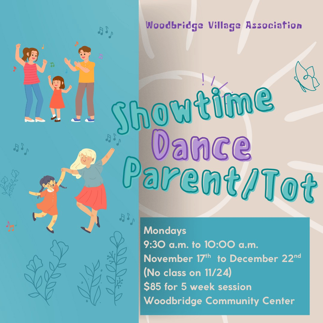 Join Showtime Dance Parent/Tot — a fun Monday morning class designed for parents and their little ones to move, learn, and bond through dance. The session runs from November 17 to December 22 from 9:30 to 10:00 a.m. at the Woodbridge Community Center. It’s a great way to introduce young children to rhythm, movement, and teamwork while sharing quality time together.