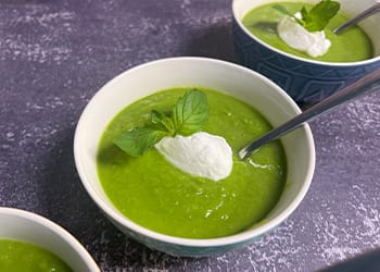 Spring Pea Soup with Mint – A light, refreshing soup packed with protein, fiber, probiotics, and calming mint to support digestion and gut health.