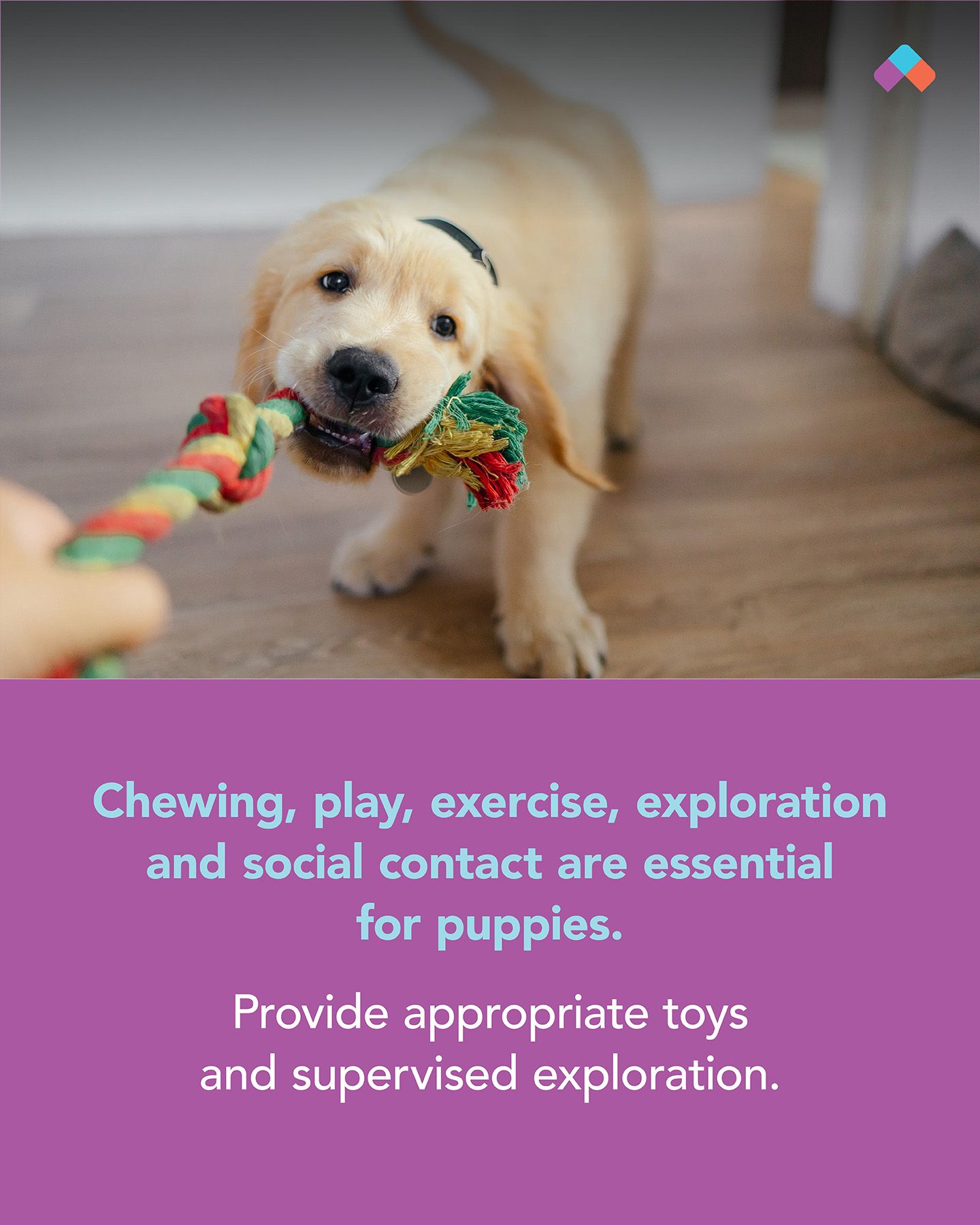 🦴 Provide safe toys and supervised exploration to support chewing, play, and learning