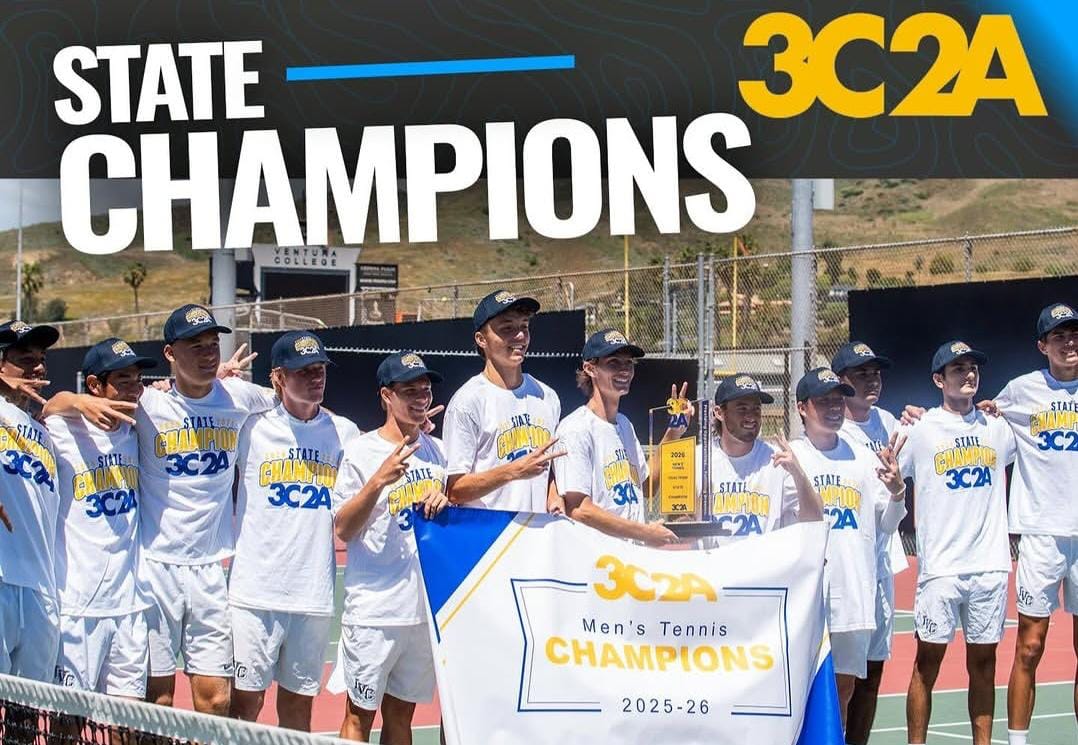 Irvine Valley College men’s tennis won back-to-back state championships after sweeping Foothill College 5-0 in the 2026 3C2A Men’s Dual Team Championship at Ventura College. The Lasers captured their fifth state title since 2015, finishing the season 14-1 and dominating in doubles before clinching the title with strong singles wins from Steven Anderson and Bradley Yung.