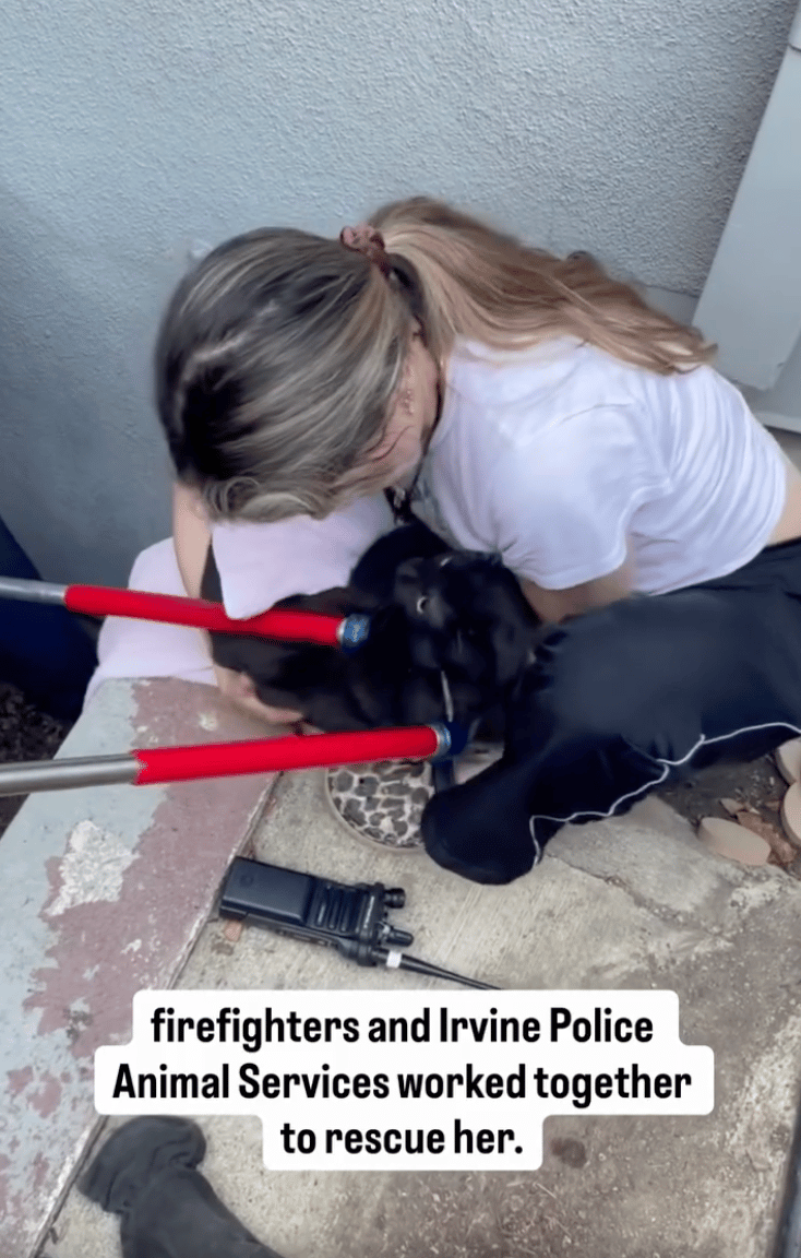 Lucy the cat was safely rescued in Irvine after being stuck for nearly 10 hours inside an exhaust vent in a parking structure. Orange County Fire Authority firefighters and Irvine Police Department Animal Services worked together, carefully cutting part of a metal grate using hand tools to avoid scaring her further, and successfully reunited her with her relieved family.