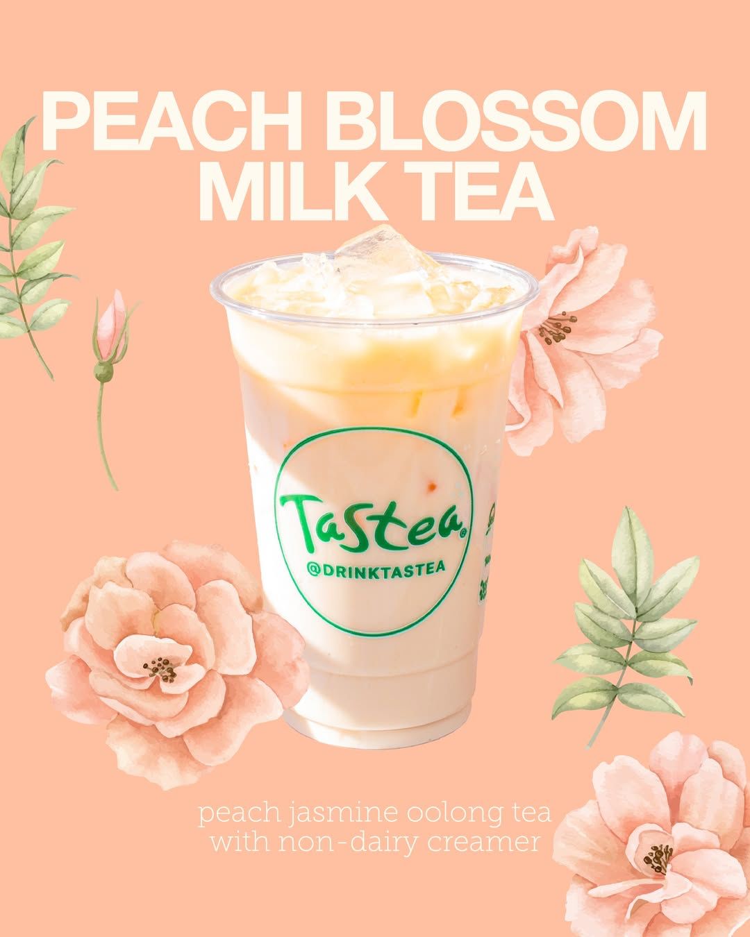 Tastea is welcoming spring with its new Peach Blossom Milk Tea, a refreshing peach jasmine oolong tea blended with non-dairy creamer. This seasonal drink offers a smooth, slightly sweet flavor— a perfect treat to start your day.