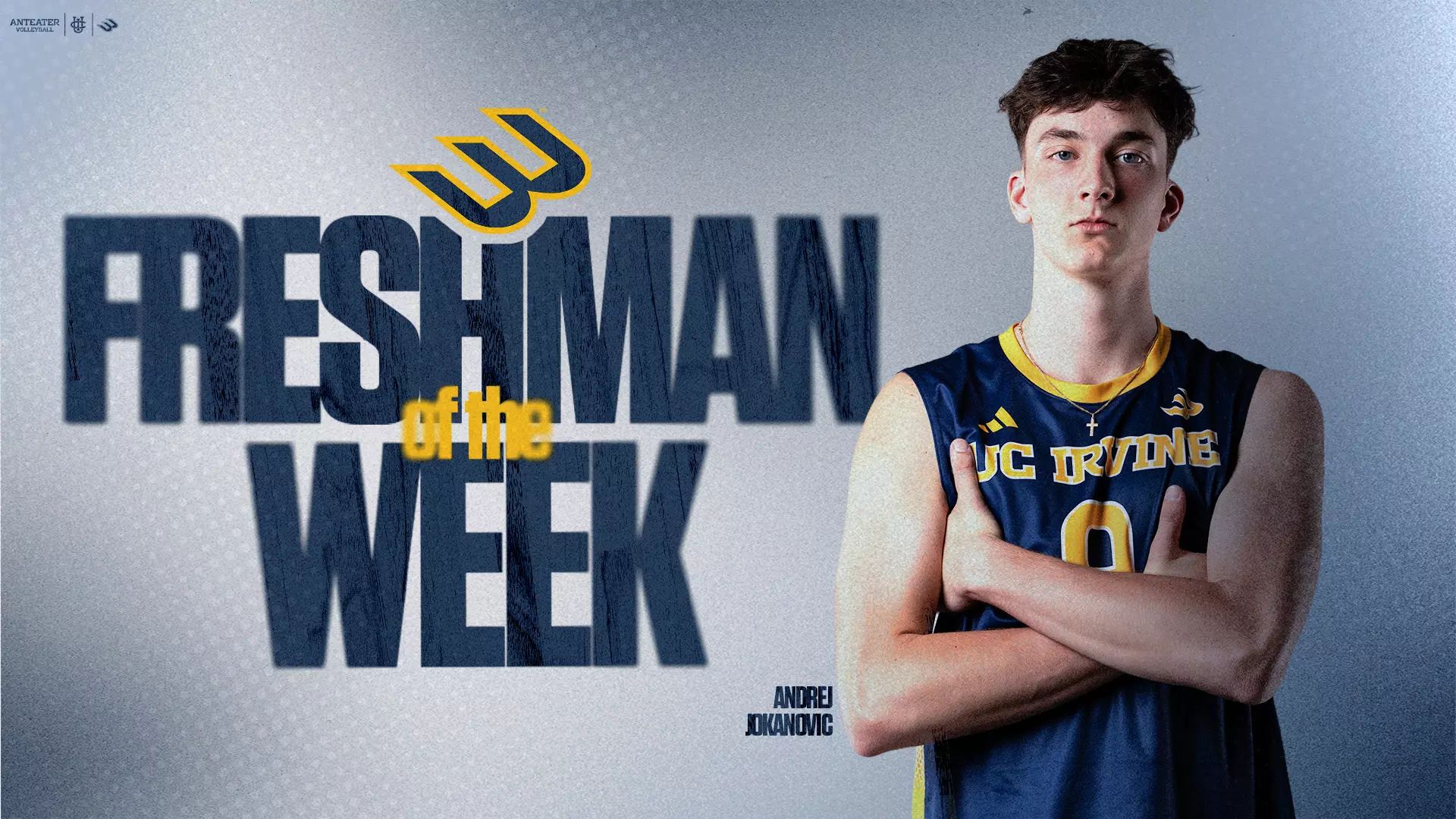 UC Irvine freshman Andrej Jokanovic earned his fifth Big West Freshman of the Week honor after leading the Anteaters in a split series vs. UC Santa Barbara, averaging 4.11 kills and recording standout performances of 20 and 17 kills.