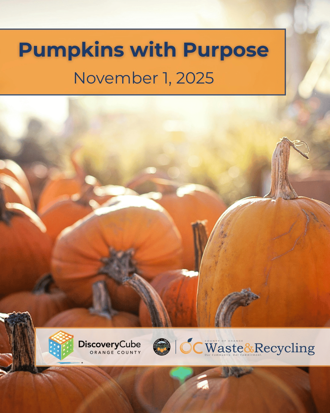 On Saturday, Nov. 1, from 10 a.m. to 2 p.m., bring your used pumpkins to Discovery Cube OC for composting. This free event promotes sustainability through composting, turning pumpkins into nutrient-rich soil.